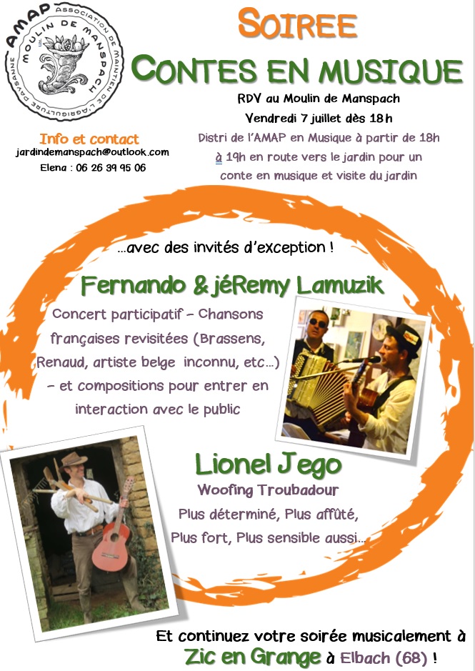 Distri de l'AMAP en Musique à partir de 18h, à 19h en route vers le jardin pour un conte en musique et visite du jardin.