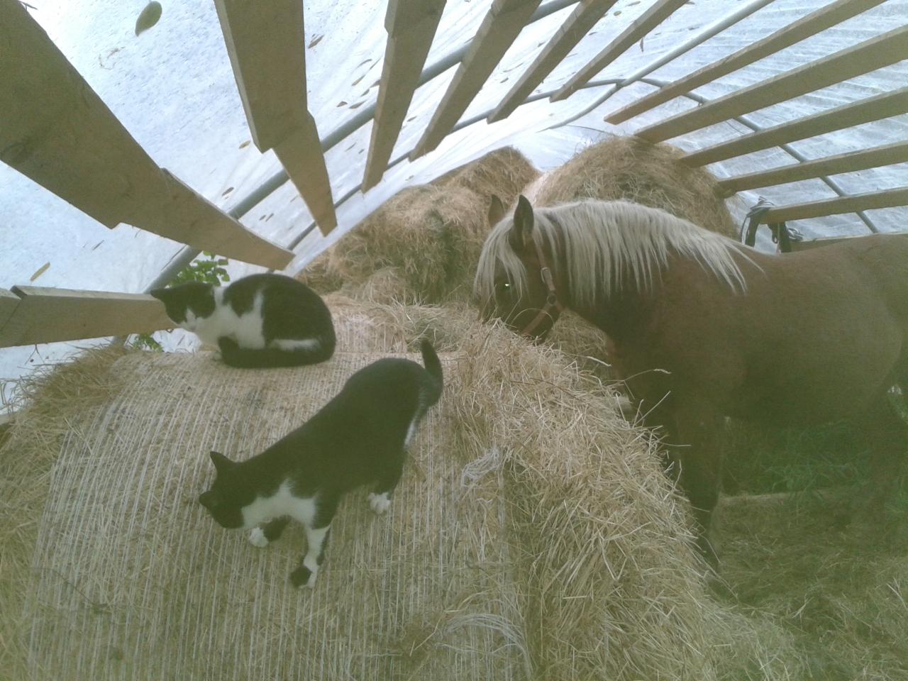Agathe dans son abri avec les chats