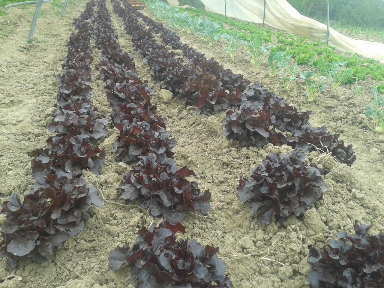 Feuille de chene rouge et choux raves sous petit tunnel