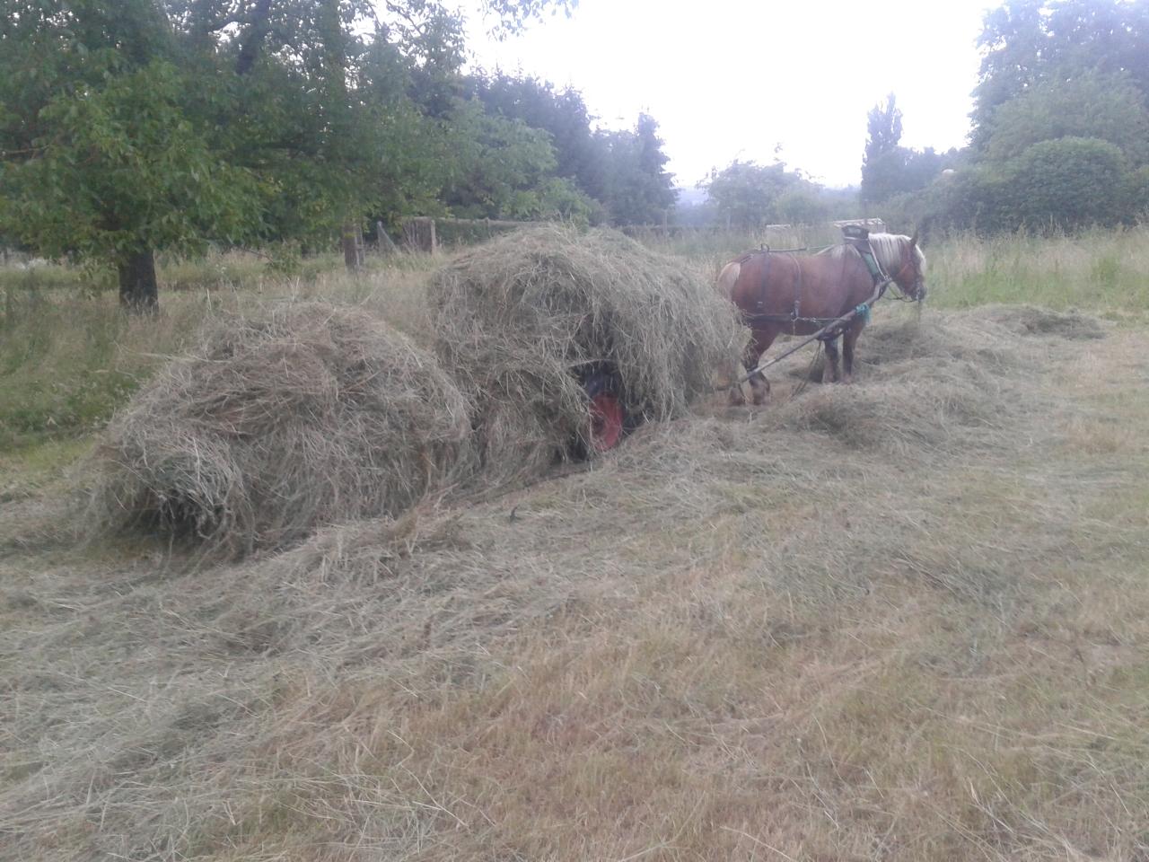 Ramassage du foin à cheval