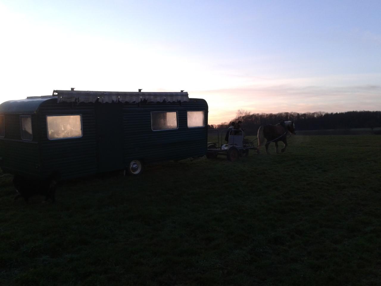 Transport d'une caravanne de 6 m dans un champ détrempé